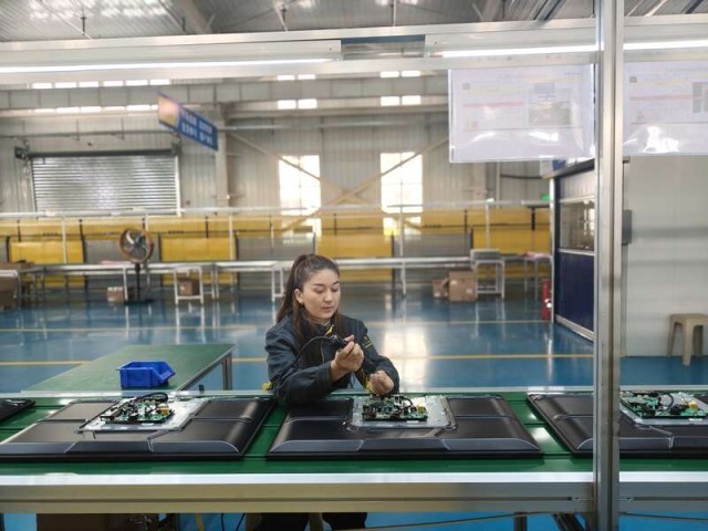 10月17日◈◈★◈,新疆喀什◈◈★◈,本地居民在喀什康意智能科技有限公司生产线负责液晶显示屏的组装加工◈◈★◈。中青报·中青网记者 宁迪/摄